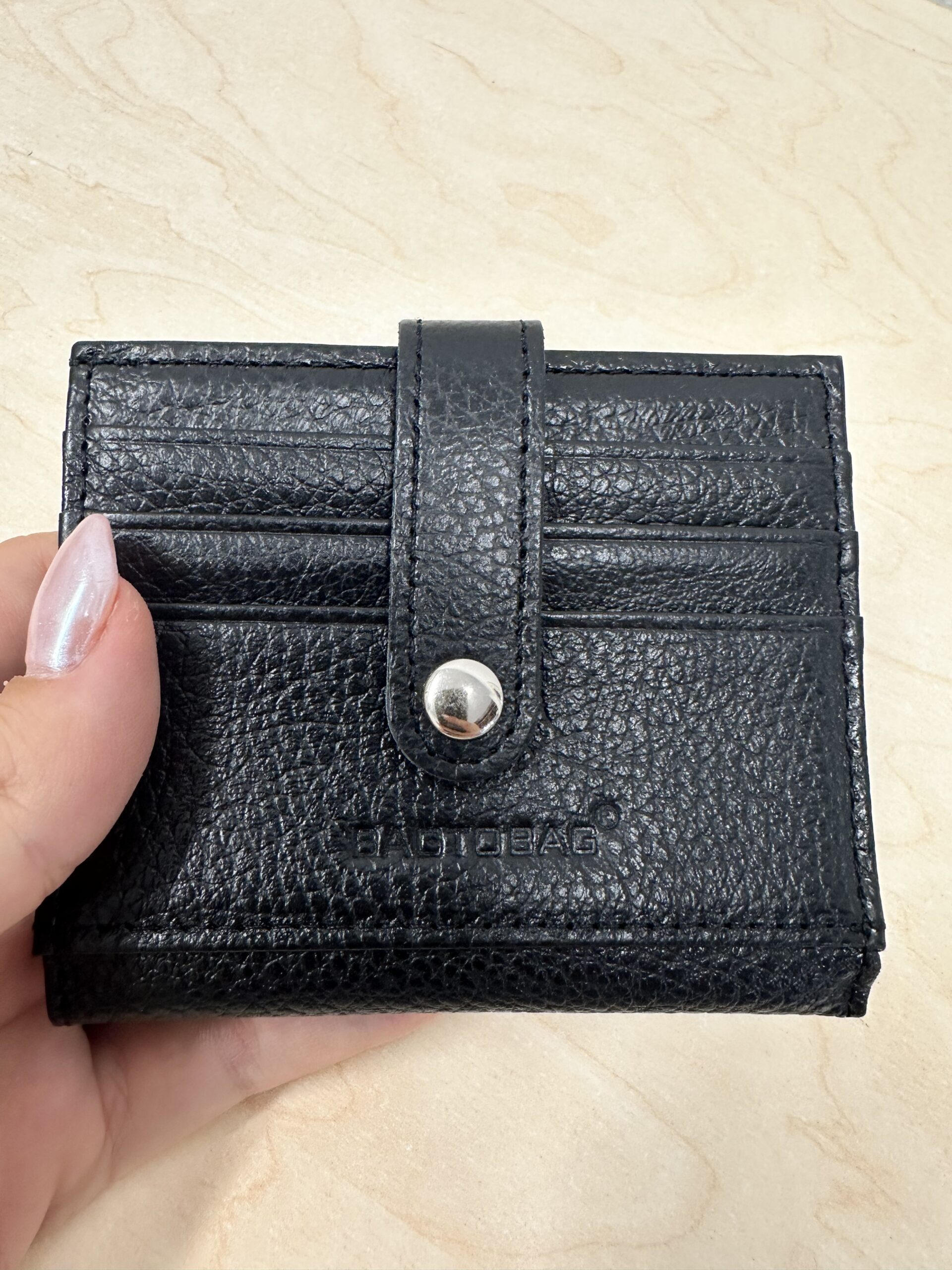 Οργανώστε τις κάρτες και τα μετρητά σας με στυλ και ασφάλεια με αυτή την κομψή κάρτα-θήκη Bag to Bag σε μαύρο χρώμα. Κατασκευασμένη από ανθεκτική δερματίνη με ανάγλυφη υφή, προσφέρει μια μοντέρνα αλλά ταυτόχρονα διαχρονική αισθητική. Το εξωτερικό της είναι διακοσμημένο με διακριτικό λογότυπο και κλείσιμο με κουμπί για μέγιστη ασφάλεια.