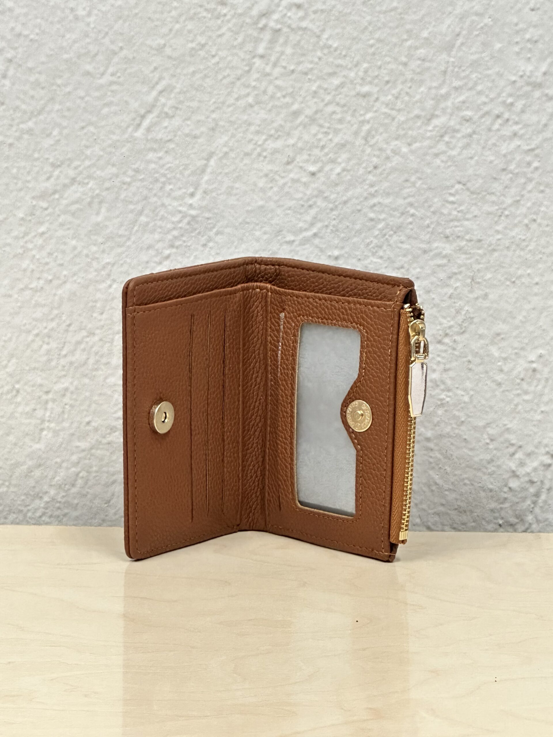 Ανανεώστε το στυλ και την καθημερινότητά σας με αυτό το καλαίσθητο γυναικείο πορτοφόλι σε ζεστό καφέ χρώμα. Είναι κατασκευασμένο από υψηλής ποιότητας δερματίνη με κοκκώδη υφή που προσφέρει πολυτελή αίσθηση στην αφή και ανθεκτικότητα στη χρήση.