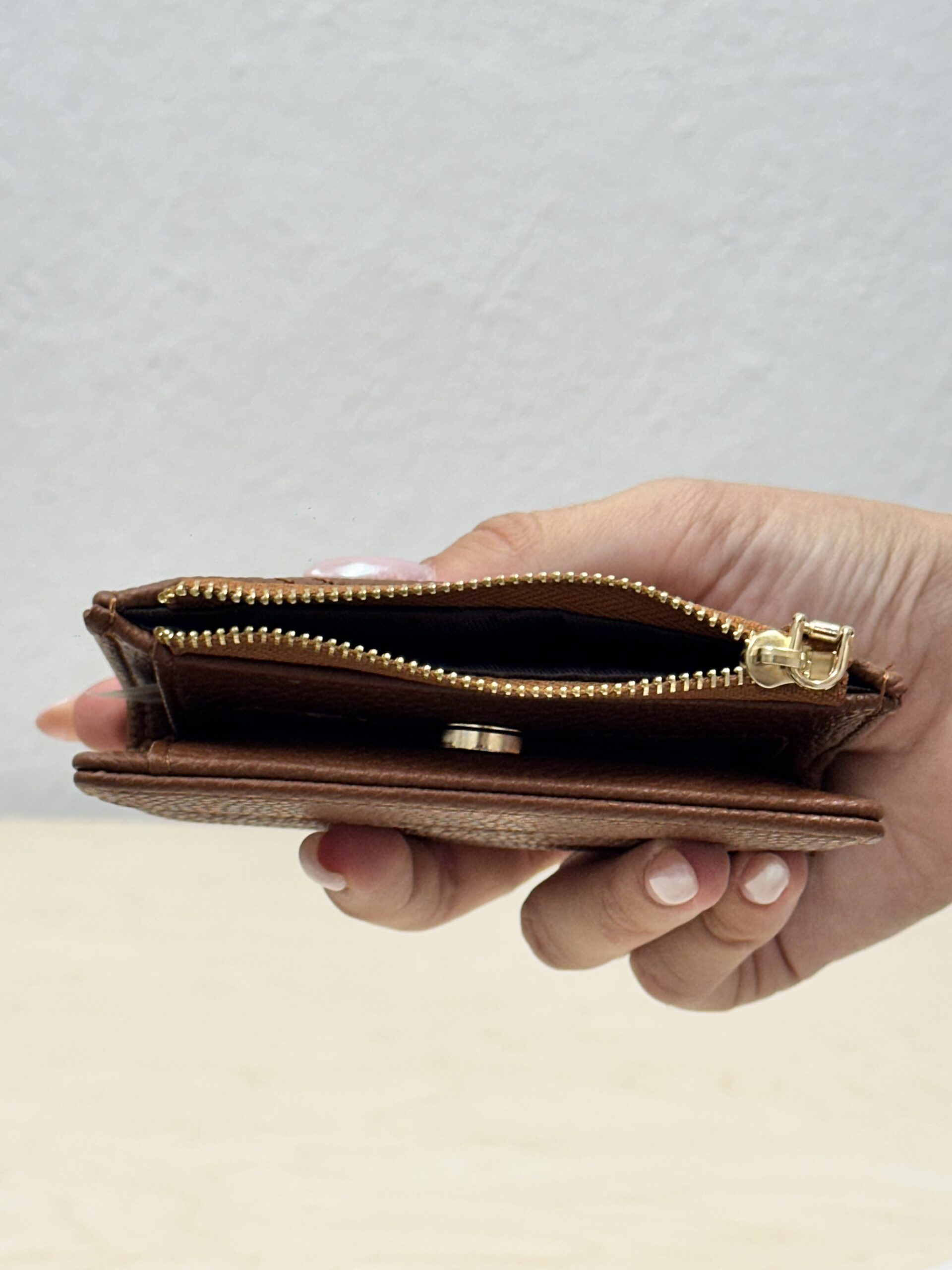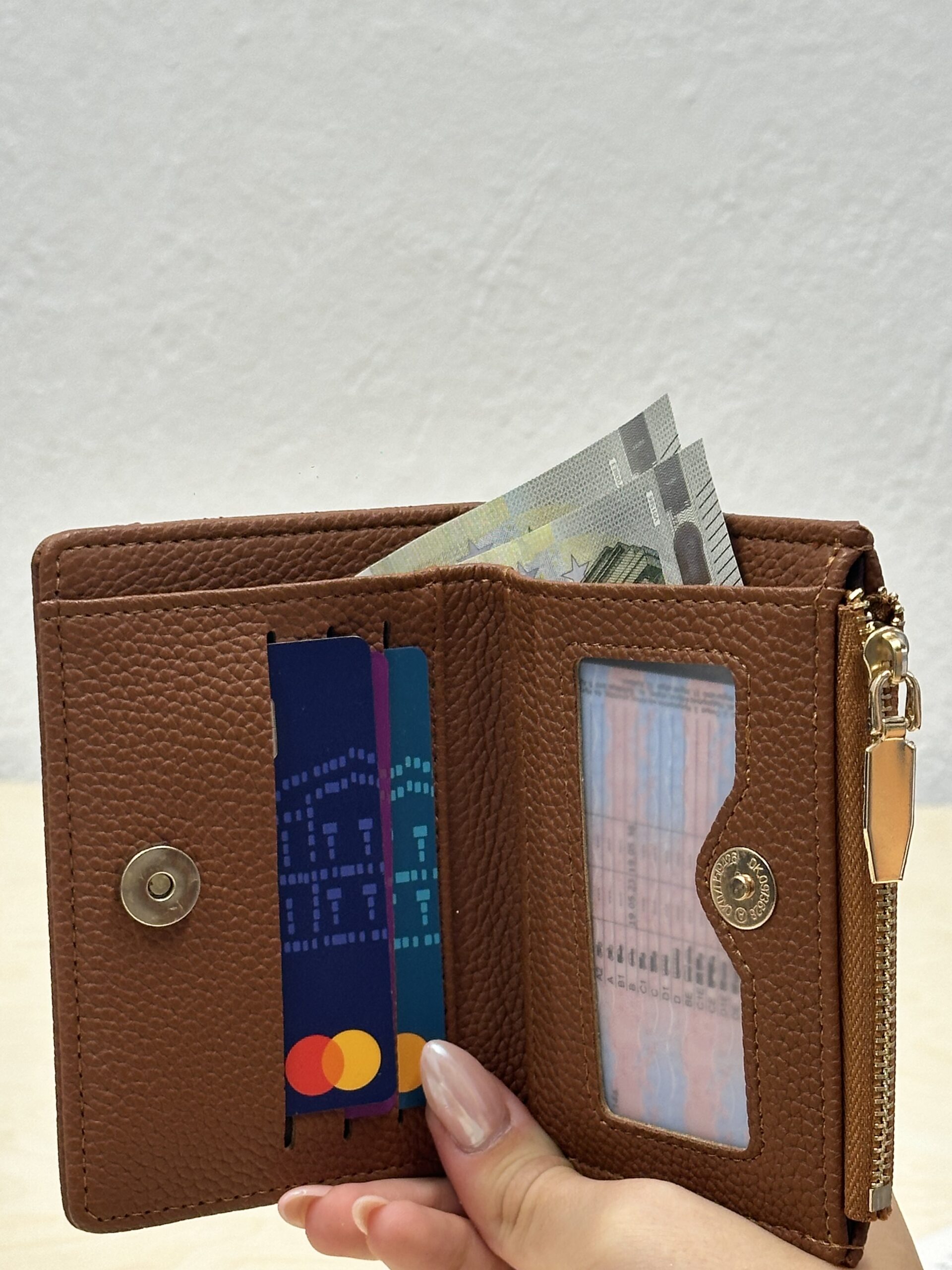 Η μεταλλική λεπτομέρεια στο κουμπί και το χρυσό φερμουάρ δίνουν έναν κομψό τόνο που το καθιστά ιδανικό τόσο για καθημερινή χρήση όσο και για πιο επίσημες εμφανίσεις. Είναι το τέλειο μέγεθος για να χωράει σε κάθε τσάντα χωρίς να σας βαραίνει, αλλά και αρκετά ευρύχωρο για να καλύπτει όλες σας τις ανάγκες.