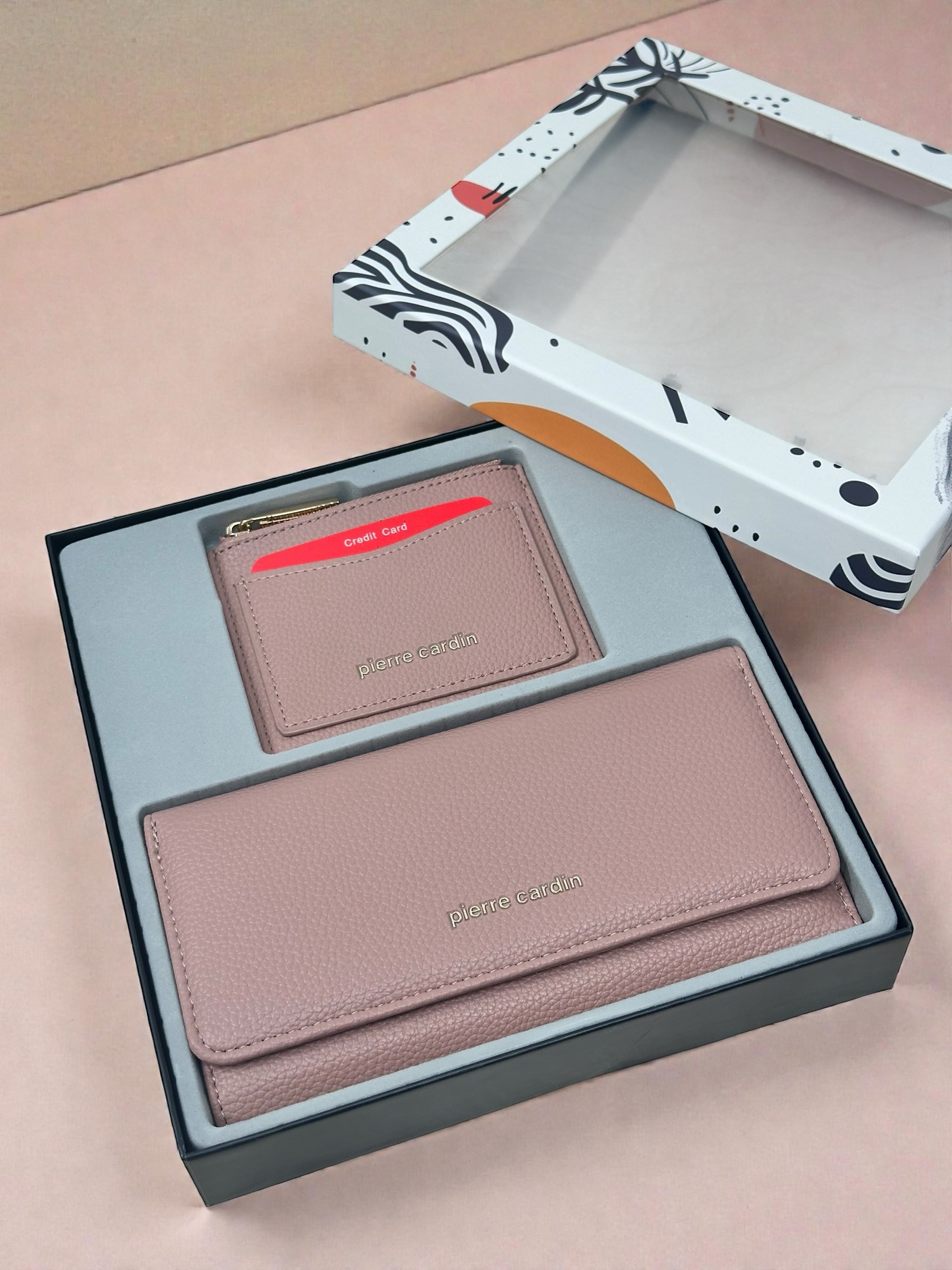 Το σετ περιλαμβάνει ένα μεγάλο δερμάτινο πορτοφόλι και μία θήκη καρτών, κατασκευασμένα από ποιοτικό γνήσιο δέρμα με απαλή υφή και διαχρονικό σχεδιασμό.