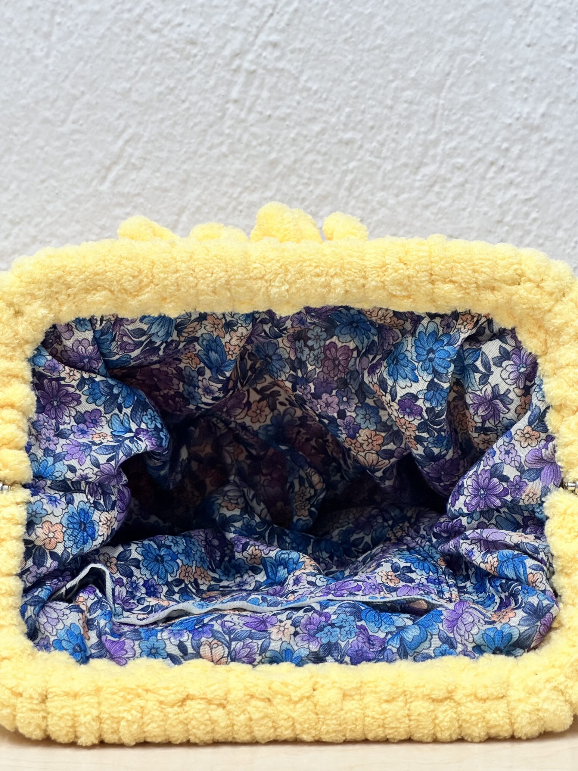 Το έντονο κίτρινο χρώμα της αποπνέει θετική ενέργεια, ενώ το ανάλαφρο, φουσκωτό της σχήμα την καθιστά εύκολη και άνετη στο κράτημα. Στο εσωτερικό της, θα βρεις μοναδική, χειροποίητη φόδρα που αλλάζει από κομμάτι σε κομμάτι, και φυσικά το ταμπελάκι με την υπογραφή της zvboutique, που επιβεβαιώνει την αυθεντικότητα και τη φροντίδα πίσω από κάθε δημιουργία.